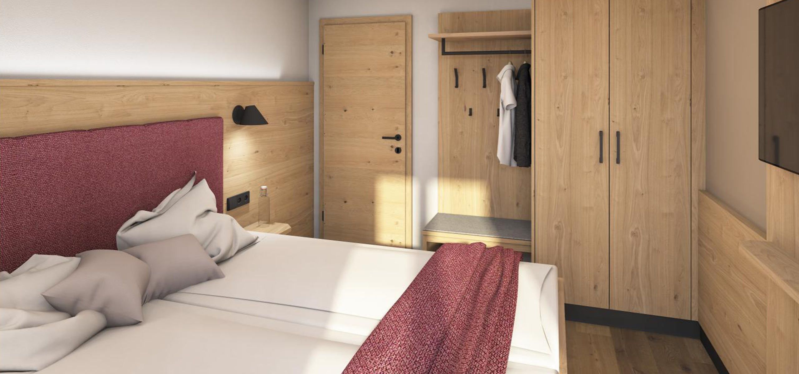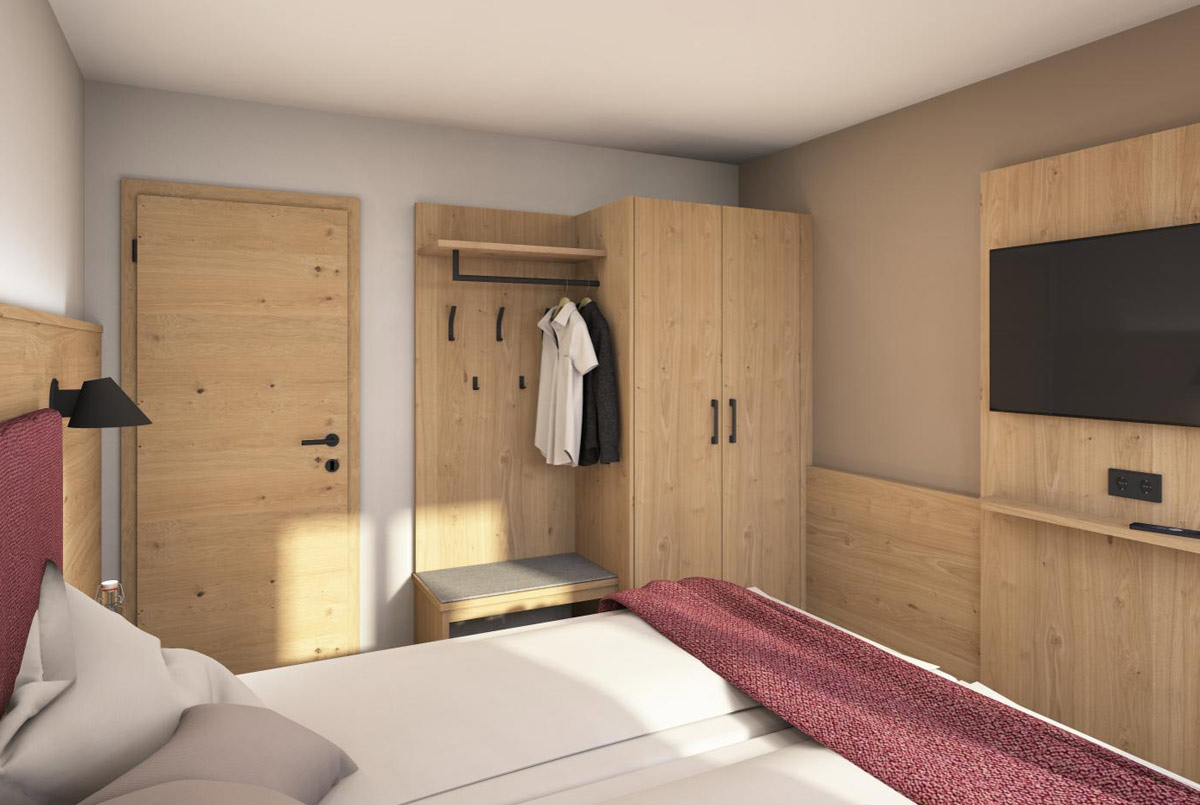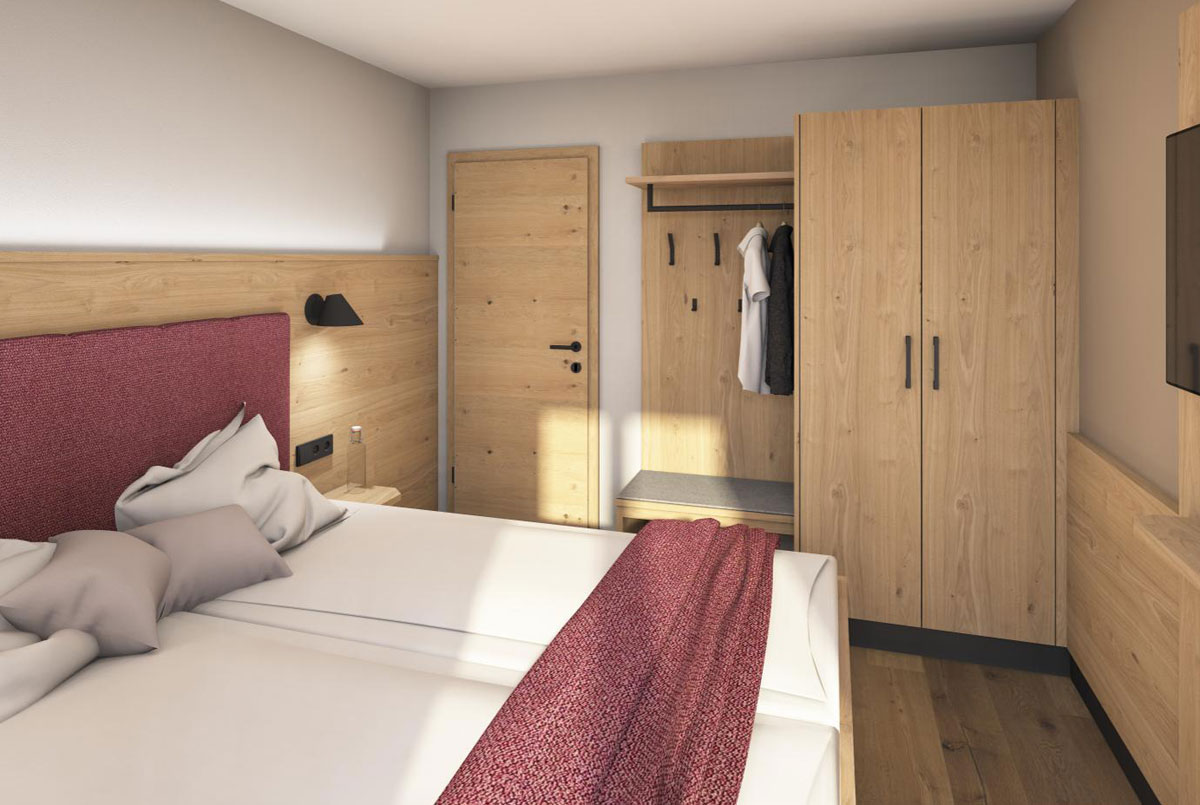 Zwei Schlafzimmer mit Doppelbett, eines zusätzlich mit Einzelbett -