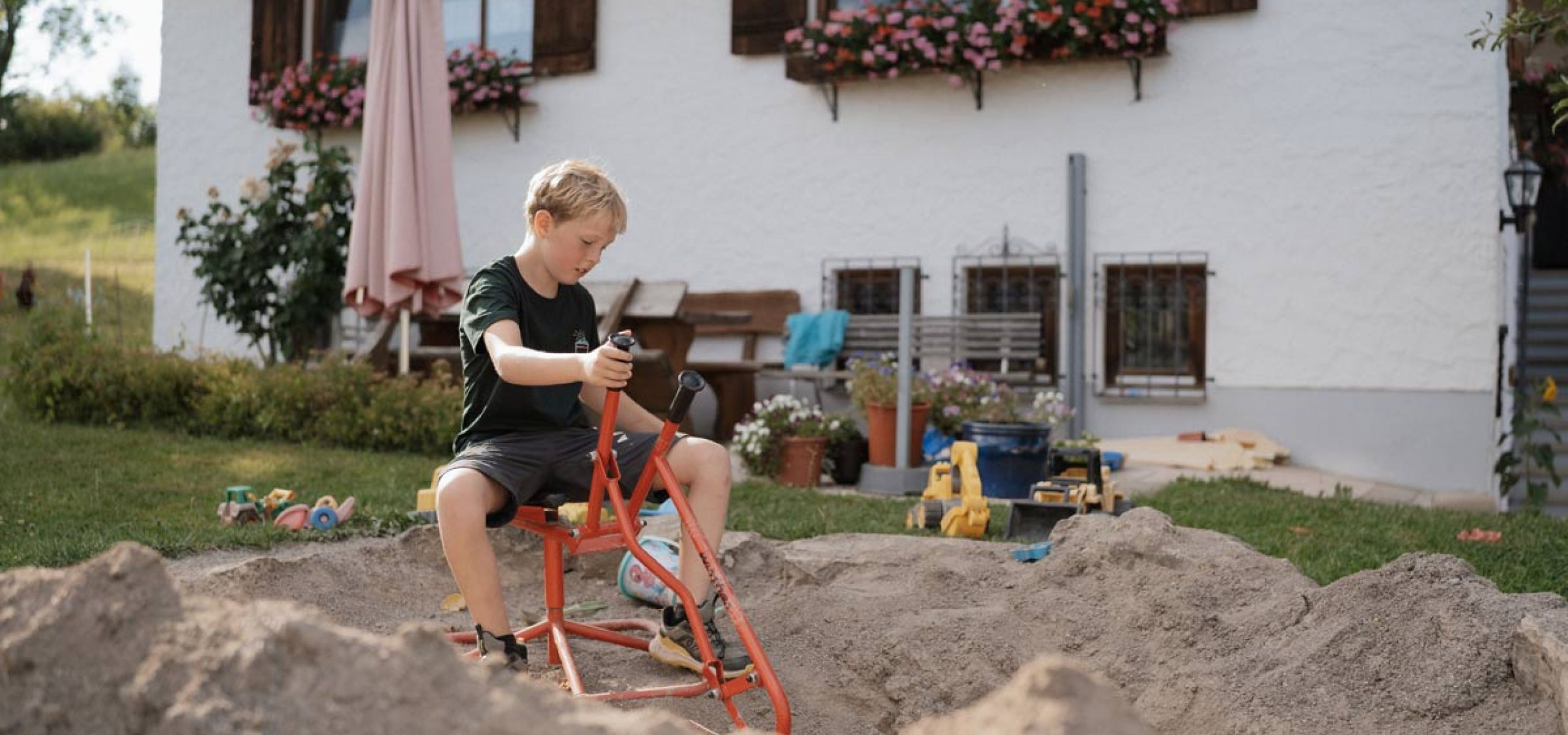 Auf unserem Ferienhof Mair in Immenstadt im Allgäu erleben Kinder und Familien unvergessliche Ferien. Der große Spielplatz mit Sandkasten, Schaukel, Gondelschaukel, Kreiselwippe, Rutsche, Riesentrampolin und Planschbecken sorgt für jede Menge Spaß. Zusätzlich warten Bobbycar, Trettraktor, Kettcar, Slackline und ein Bolzplatz auf kleine Abenteurer.